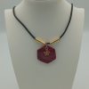 Collar de arcilla, realizado a mano. Trabajado en cuero y acero inoxidable.